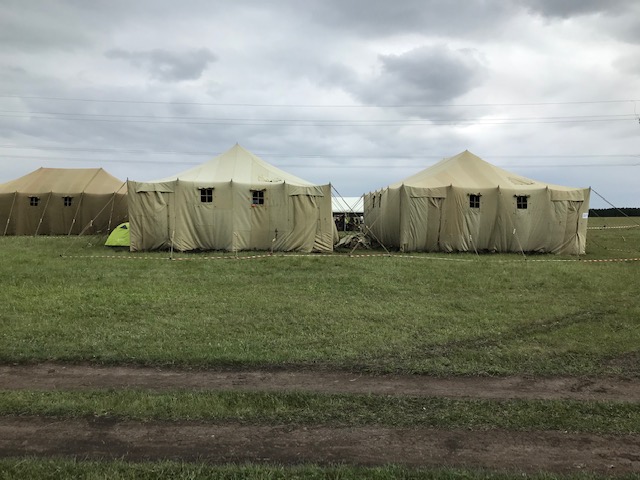 A successful arrival at the camp entrance only to find throngs of people. We had expected a serene location in the countryside somewhere.
