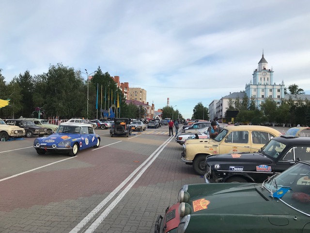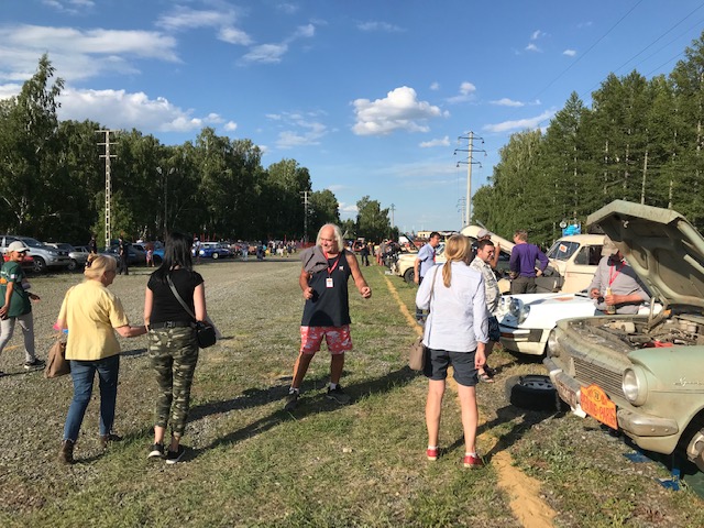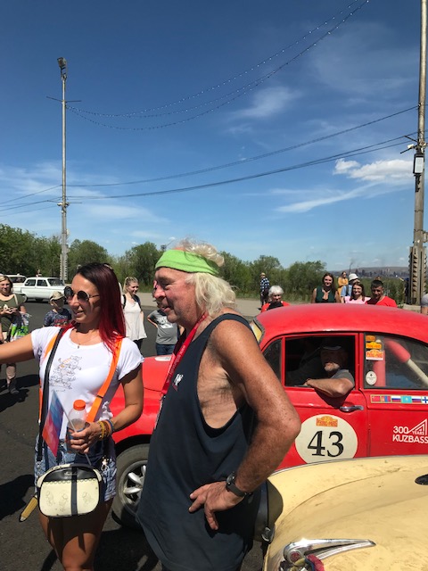 Around mid afternoon the route guided us to a “Return to Russia” event, an historical event where the Ural river divided east from west and the turmoil around that time. It’s called the Magnitogorsk celebration and the PtoP just happened to be there on the day. A real welcome by the locals, each car being introduce over a loudspeaker system. A hot day and all and sundry turned out. Lots of children beautifully dressed and everyone trying to speak to you. The old and the new. They are just so friendly. There were some old cars, bikes and some armaments. Russians dressed in their old uniforms. Couldn’t take any photos due to phone being left in the sun on the car dashboard charging up. Pity. Got a couple though before it froze.