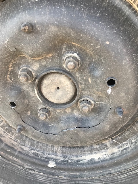 At one glance it was easy to see that the entire wheel was about to seperate from where it was fastened to the hub. Outside the wheel nuts, the crack had almost come full circle, with about 10cm of metal fatigue and it would have come away.