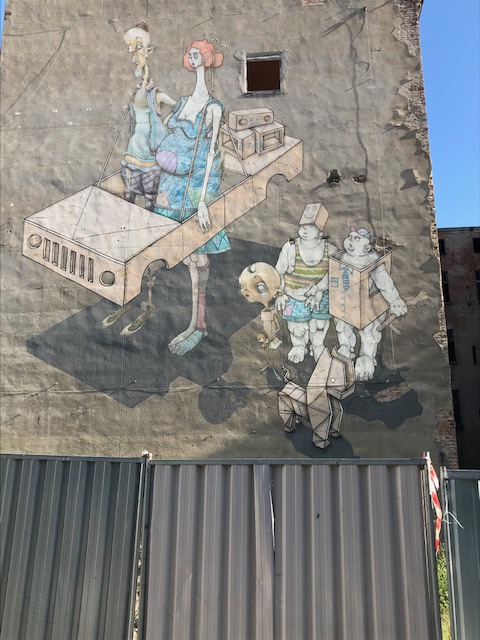A wall painting on the wall of a building nearby