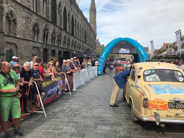 So, an interesting day but we were not prepared for the welcome that we would receive in Ypres. In their town square, surrounded by exquisite buildings was a welcoming committee of several thousand people, waving flags and shaking hands clapping and shouting. It was just overwhelming and fantastic. In amongst the crowd were friends from New Zealand Lolly and Bernie Cotter from Mt Maunganui.