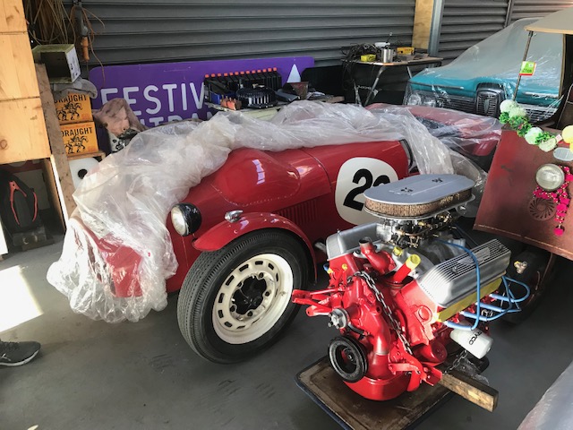 The grunty KROFT track racer with the reconditioned Ford Thunderbird engine ready to install